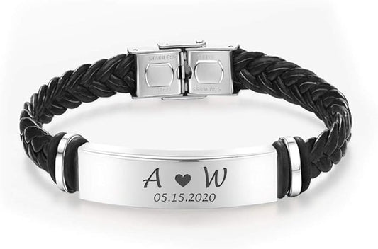 Njegova Priča - personalizovana muška narukvica od nerdjajućeg čelika i kože