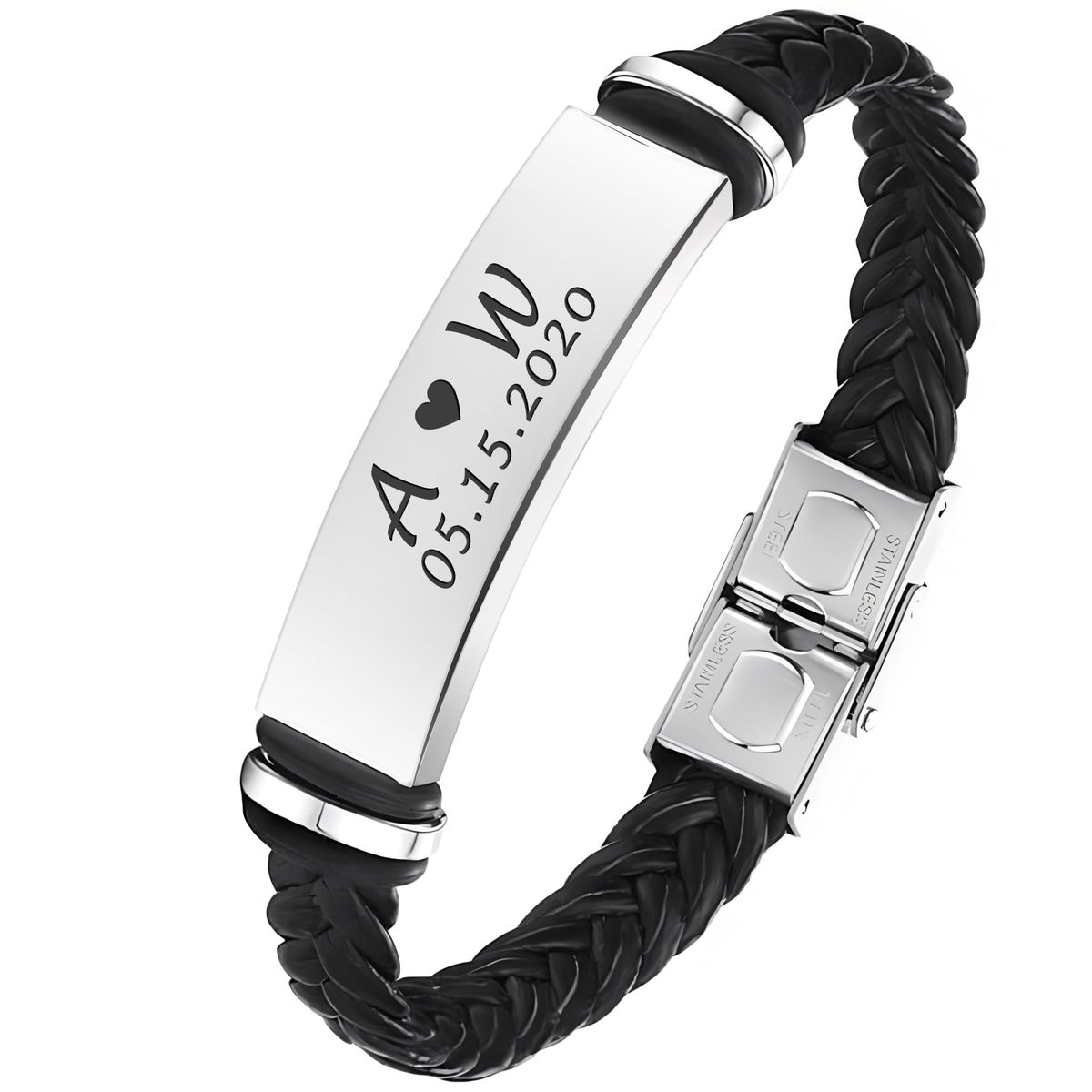 Njegova Priča - personalizovana muška narukvica od nerdjajućeg čelika i kože